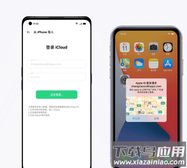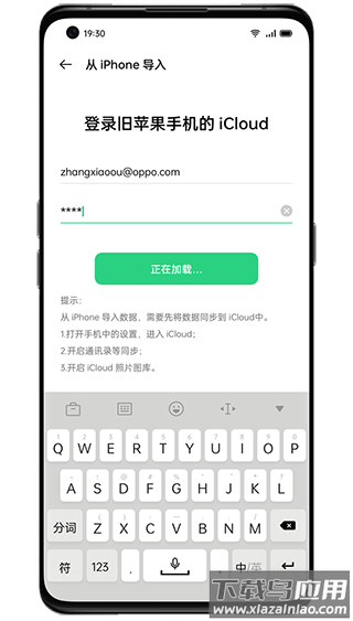 1、启动OPPO手机搬家应用,选择从iPhone导入选项,输入苹果手机的iCloud账户信息;