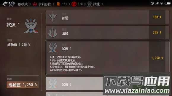 开启试炼难度后经验值大幅提升,可适当选择两项额外难度,依然推荐伊丽莎白开局。