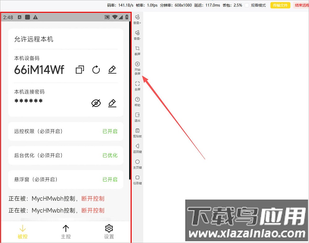 5、成功连接后即可通过网页界面操控手机桌面,同时支持屏幕录制。
