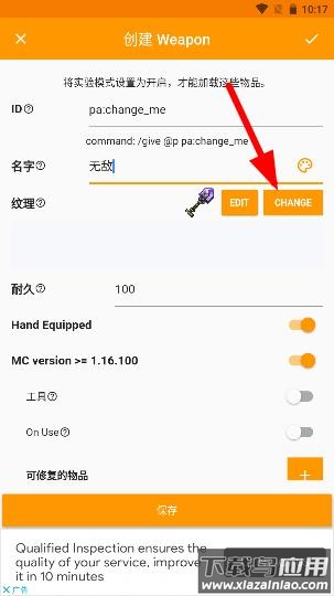 4、选择好物品后进入编辑界面,那个id不用改,名字可以自己随便输入然后点击字多的那个按钮;