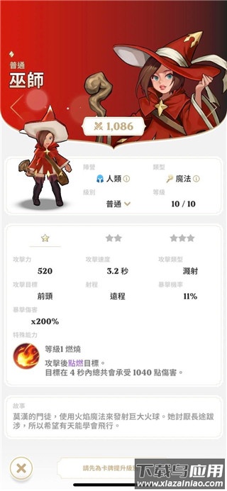 巫师:攻速慢,直接伤害不高,但击中后燃烧伤害可观;主要用于范围清场,面对30只小怪波次时优先前置,可快速清理。