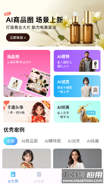 ■AI商品图:上传产品图片,自动生成多场景主图设计;