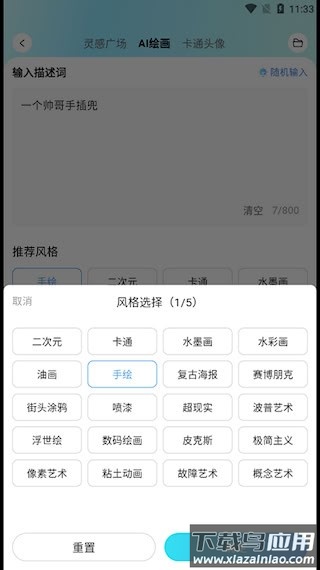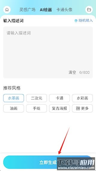 3、以ai绘画功能为例,在输入框填写描述词并选择偏好风格;