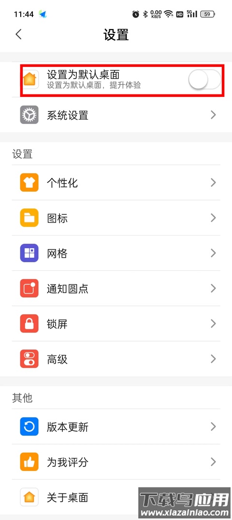 5、在设置列表首位找到设为默认桌面选项,点击该功能项;