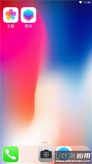 3、成功进入后即可体验完整的iOS风格界面,若满意效果可设置为默认桌面,之后无需手动启动即可长期使用;通过桌面上的主题与壁纸入口可浏览大量iPhone风格样式资源;