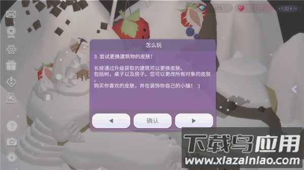 3、更换建筑外观;长按已升级的建筑可以切换皮肤,包括树木、桌椅及房屋等;所有物件均支持换肤,你可以购买心仪的样式,打造个性化小镇。