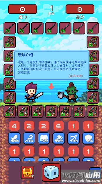 在摇奖勇者中,你将化身勇敢的冒险者,踏入一个危机四伏的异世界。游戏的核心机制是通过摇动骰子来推动每一步行动,随机的结果让每次冒险都独一无二。玩家将在像素风格的地图中不断探索,遭遇未知挑战,体验充满惊喜的冒险旅程。