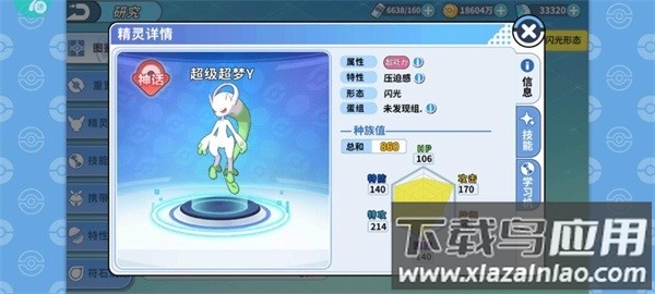 评价:超梦Y速度处于一线,特攻输出可观,对抗格斗类精灵效果显著;超能系属性在打击与抵抗方面略显普通,影响其综合压制力。
