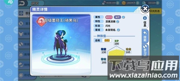 评价:黑马形态蕾冠王速度极快,击败目标后特攻提升,具备高速压制力;防御偏弱,尤其惧怕恶与幽灵属性技能,需谨慎应对克制关系。