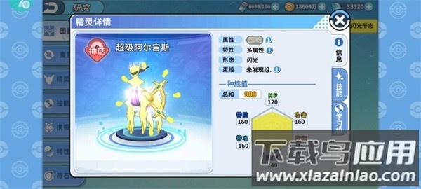 评价:阿尔宙斯凭借全能属性与高速度,配合变幻自如特性实战适应力强;即使不闪光也具备对抗多数神话精灵的实力,是单神话阵容的优选。