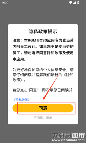 1、首次打开软件会显示隐私政策提示,点击同意后进入登录界面;