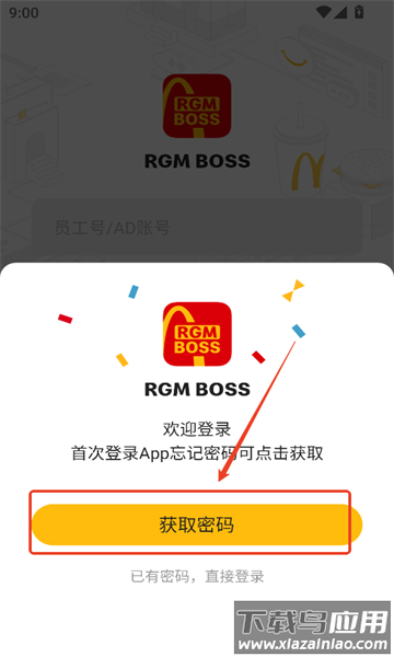 2、如忘记密码,可点击获取密码按钮进行重置;