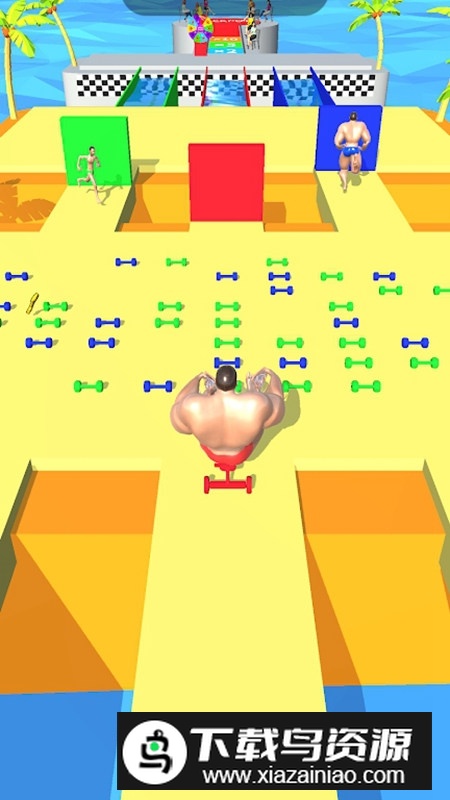 3.在赛道中收集各类道具,增强肌肉与体格,提升闯关效率。