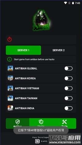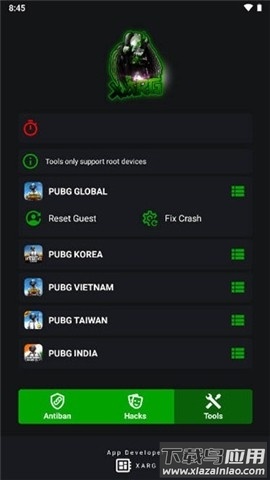 4、完成授权后,可以看到软件提供多种功能选项,并支持PUBG国际服、印度服等多个服务器版本,选择你需要的版本进行应用即可。