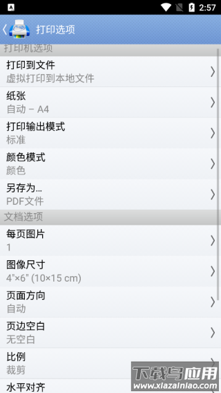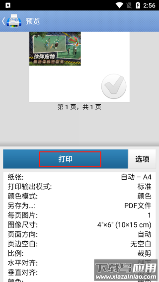 7、点击选项可调整打印设置,包括图像尺寸、颜色模式、缩放比例与页面布局等参数;