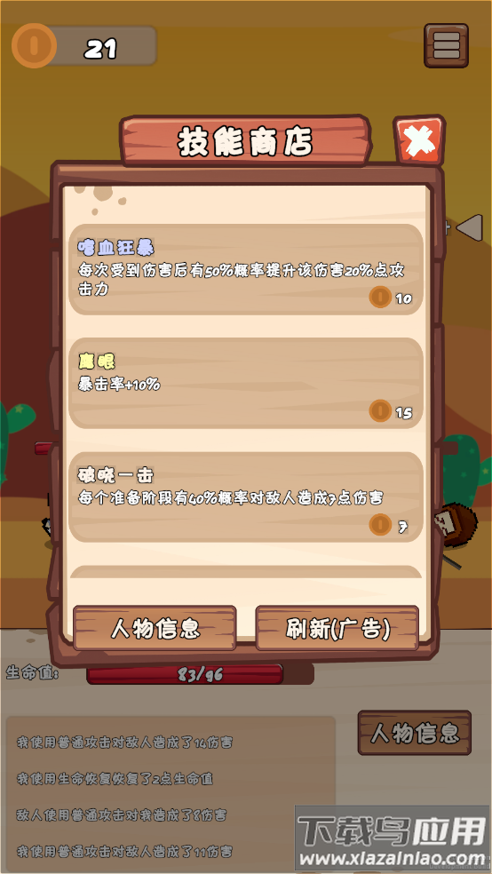 2、每次战斗结束后会生成技能商店,随机技能可供购买;