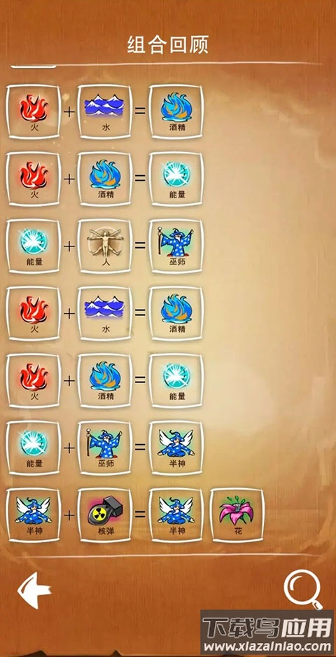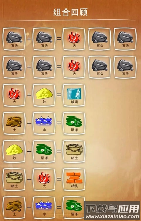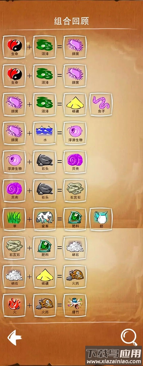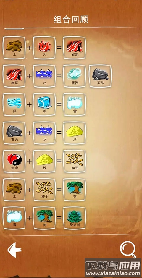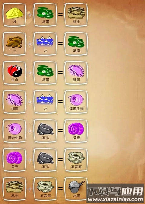 游戏基于西方神话中上帝创世的设定,将风、火、水、土设为四大基础元素。这些元素相互作用会产生新物质:土与火混合生成岩浆,岩浆遇水形成岩石与蒸汽,土与风结合产生尘土,水与尘土混合形成沼泽。随着合成深入,细菌、植物、动物乃至人类都将被逐一创造。每种新元素的诞生既符合逻辑又充满意外,需要玩家融合物理、化学与艺术多维度思维。例如人类与死亡组合会生成僵尸,这类合成规则展现了生命科学与幻想艺术的结合。