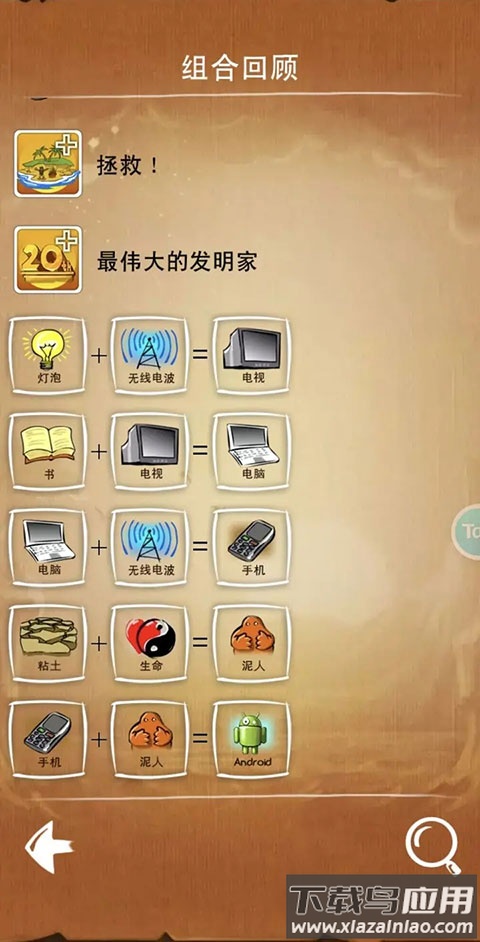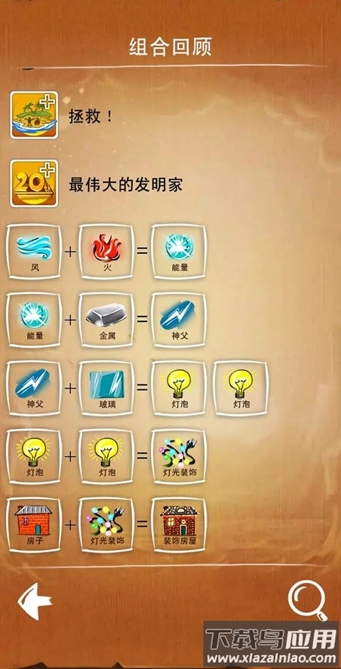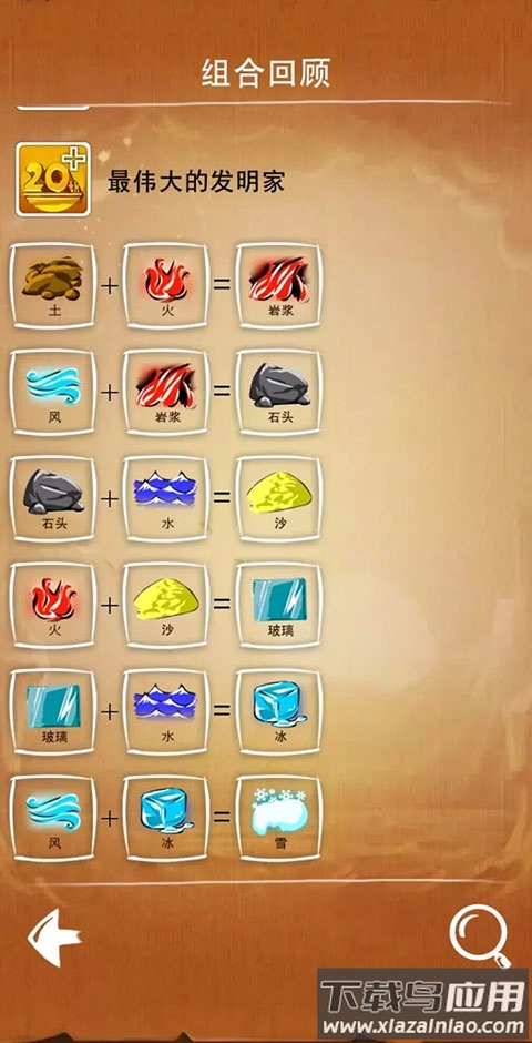 游戏包含三种模式:主线模式围绕四大基础元素展开万物创造;任务模式要求在限定元素内合成指定物品;猜谜模式需要从基础元素逆向推导出目标元素。每种模式都呈现独特挑战:主线考验创造力,任务测试组织力,猜谜锻炼逆向思维。