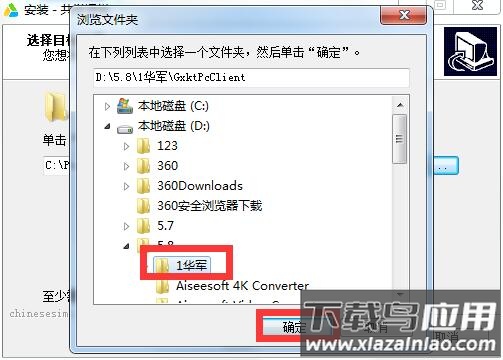 4、在D盘选择一个位置,并确定