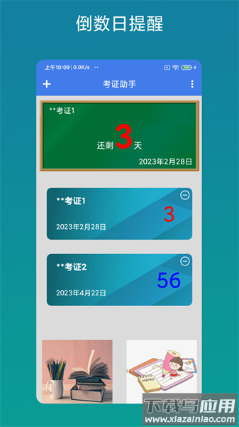 3、实时显示考试剩余天数,督促用户把握复习节奏;