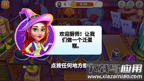 1、进入万圣节烹饪餐厅游戏,点击页面继续