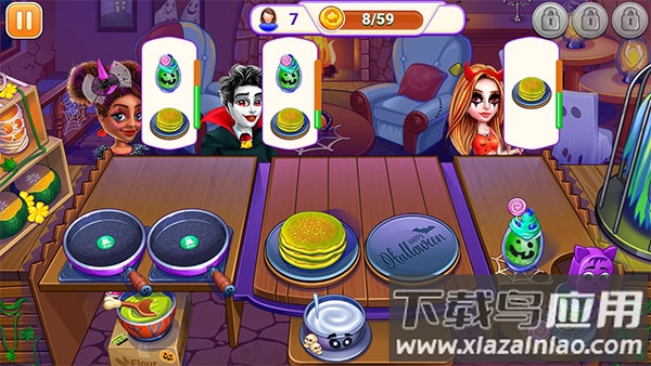 游戏以万圣节为背景,营造出浓厚的节日氛围,让玩家沉浸于捣蛋与美食交织的欢乐之中;玩家不仅可以锻炼烹饪技巧,还能自由尝试创意食谱,满足不同顾客的口味偏好;游戏还支持多人互动,你可以与好友一起完成任务、互赠礼物,增强协作乐趣。