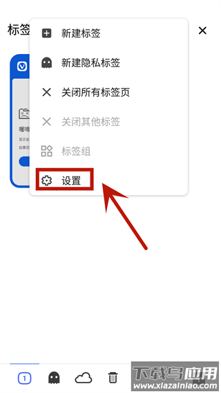 2、在标签管理页点击右上角三个点图标,在弹出的菜单中选择设置项;