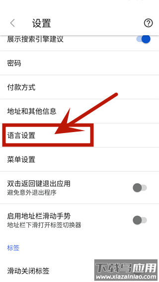 3、进入设置页面后向下滑动,找到语言选项并点击进入;
