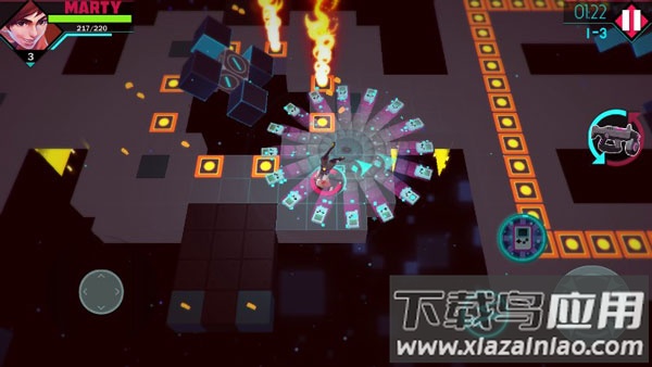 游戏采用直观的双摇杆操作,左侧控制移动,右侧负责射击、闪避与技能释放。熟练掌握按键配合,能够打出流畅的连续攻击与战术回避。