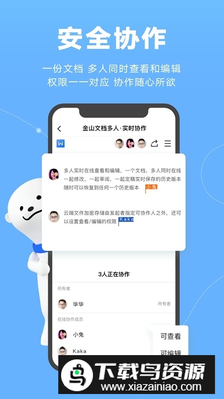 2.灵活设置文档权限:可为不同成员分配查看或编辑权限;