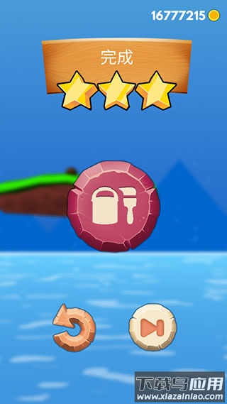 3、界面显示星级评分,步数越少星级越高;操作失误可点击左侧重来,右侧按钮进入下一关。