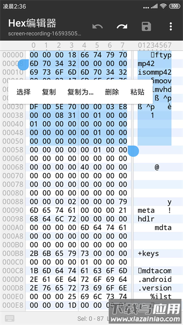 1. 复制与粘贴操作:选中数据后可选择直接复制或转换为指定文本格式,支持Base64、MD5等计算;粘贴时可通过剪贴板文本转字节数据实现灵活写入;