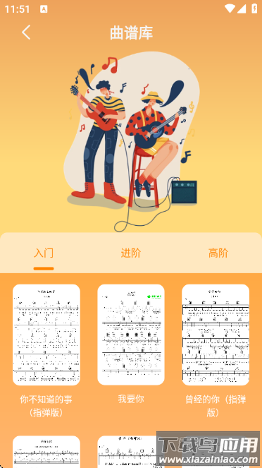4、点击曲谱库,可查看从入门到高阶的多种乐器曲谱资源;