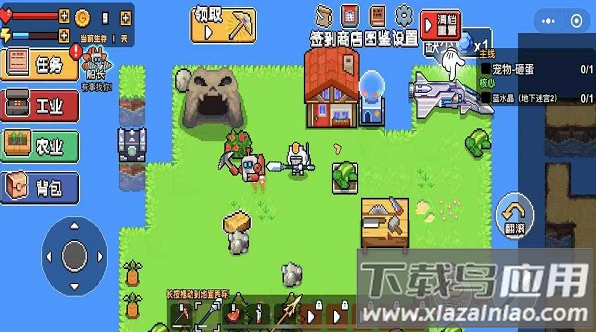 荒岛求生模拟器采用卡通像素风格,讲述了一个外星机器人因飞船失控坠落到荒岛的故事。玩家需要帮助机器人完成各项任务,修复损坏的飞船部件,最终成功逃离这座与世隔绝的岛屿;在冒险过程中,你将面临资源匮乏、环境危险等多重考验。