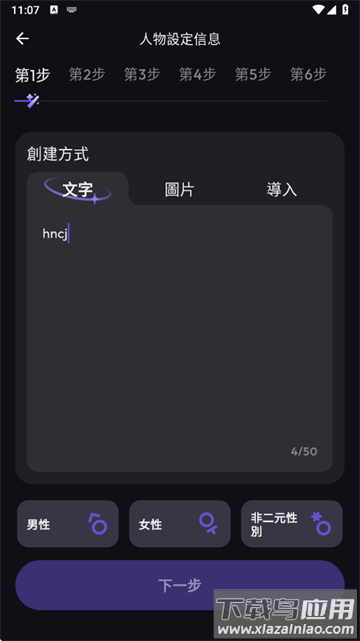 3、根据引导填写角色名称、设定性格及背景故事等信息