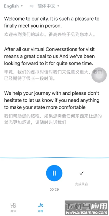 同传翻译:精准语音转写,实时显示双语字幕;