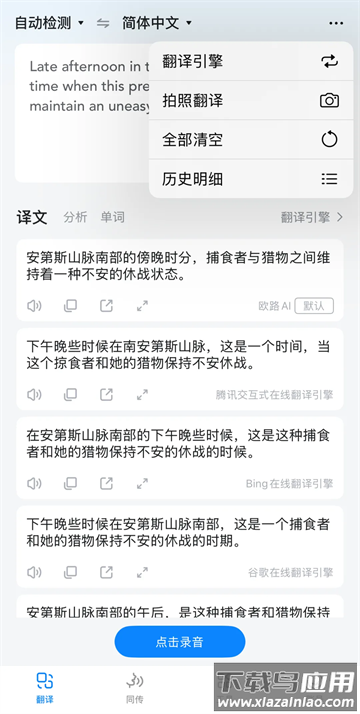 欧路翻译的同声传译功能提供话筒录音与系统内录两种模式,适应不同使用场景。