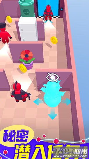 百变潜行手机版是一款益智休闲动作游戏,采用卡通风格画面,造型可爱精致,整体氛围轻松有趣;在游戏中,玩家可以变身为不同物体,隐藏自身位置,再通过移动或翻滚等方式消灭敌人,完成关卡目标。