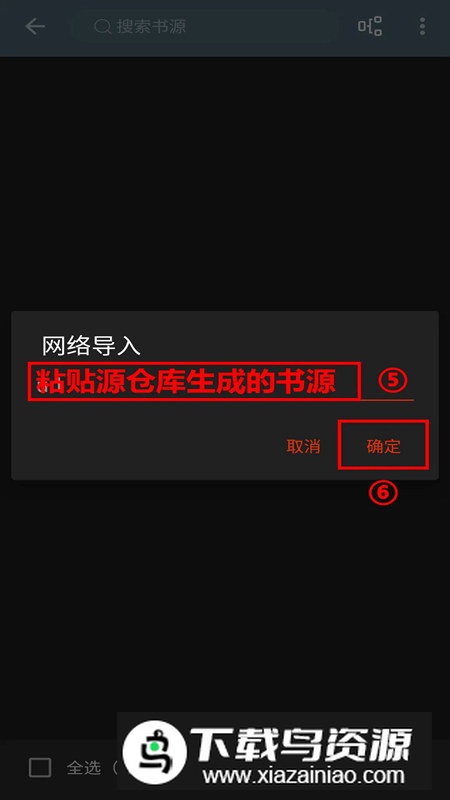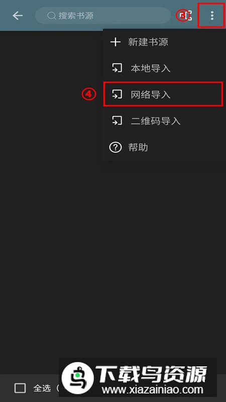 2.打开阅读APP,按顺序进入:我的-书源管理-右上角更多菜单-网络导入,粘贴刚才复制的书源链接即可完成添加。