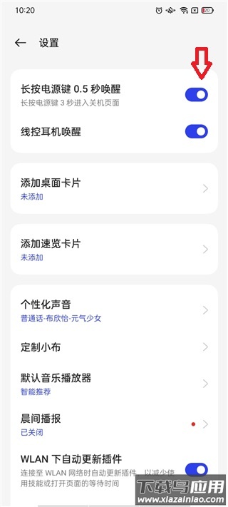 2、在设置中开启长按电源键0.5秒唤醒或线控耳机唤醒选项,即可激活语音唤醒模式;