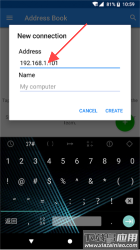 2、在连接配置中准确填写目标设备的网络地址和连接名称;