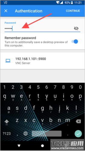 3、在认证界面输入正确的访问密码,即可建立远程连接。