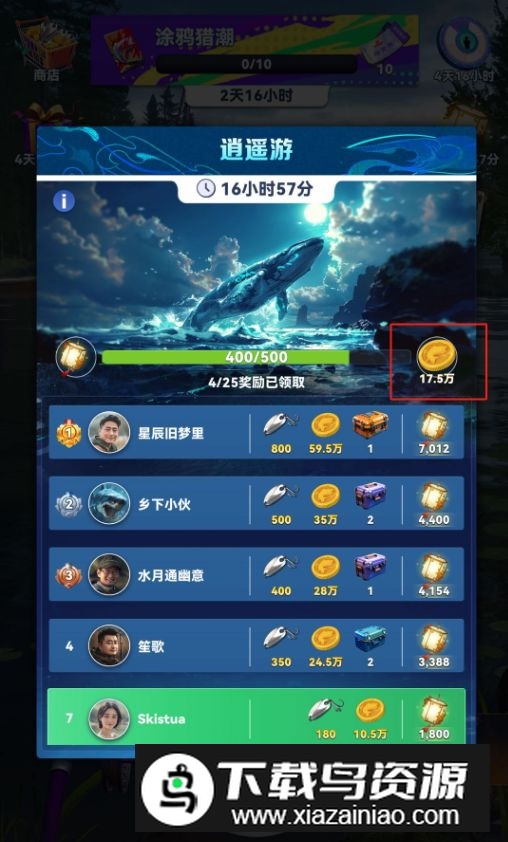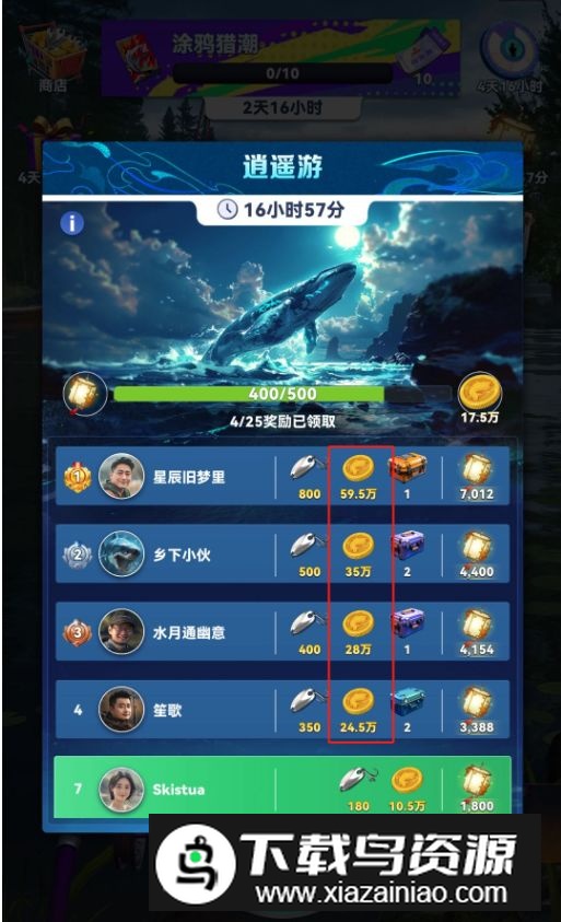 捕获北冥钓场限定鱼类,获取排行榜积分,以获得更多金币奖励