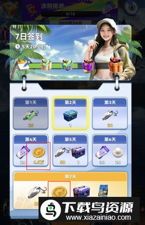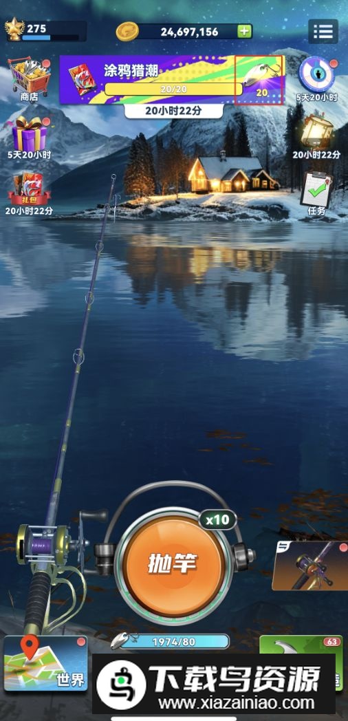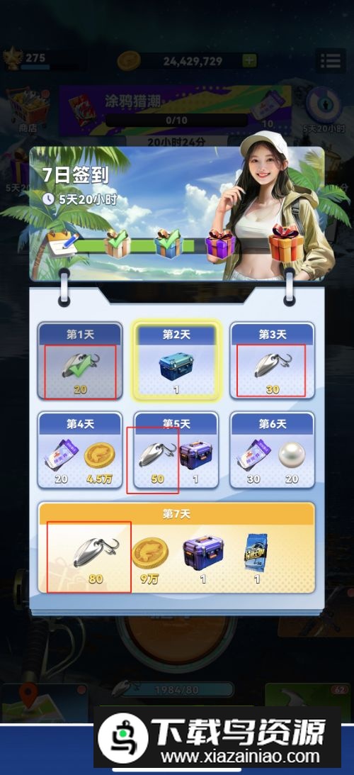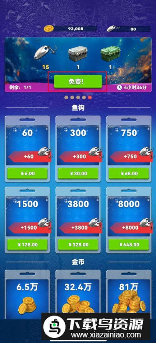 4. 免费日常奖励:在商店正上方可领取每日免费礼包,其中包含鱼钩;