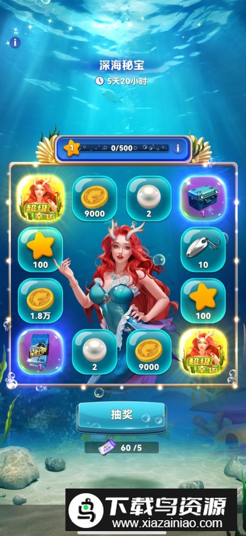 5. 深海秘宝:使用抽奖券参与深海秘宝,随机获得鱼钩奖励;