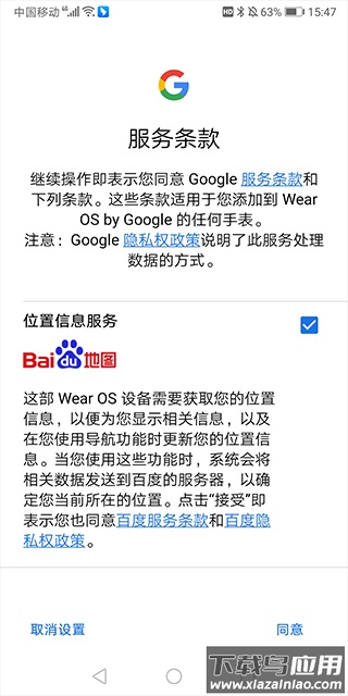 3、进入新页面后勾选位置信息服务选项,并点击右下角的同意按钮;