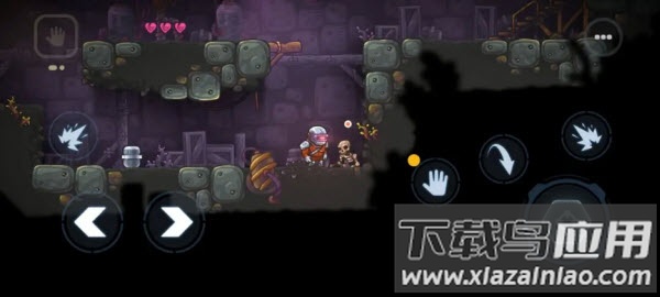 4、拾取钱袋后跳至右侧平台,注意石头边缘容易滑落,此处有三个骷髅可互动;