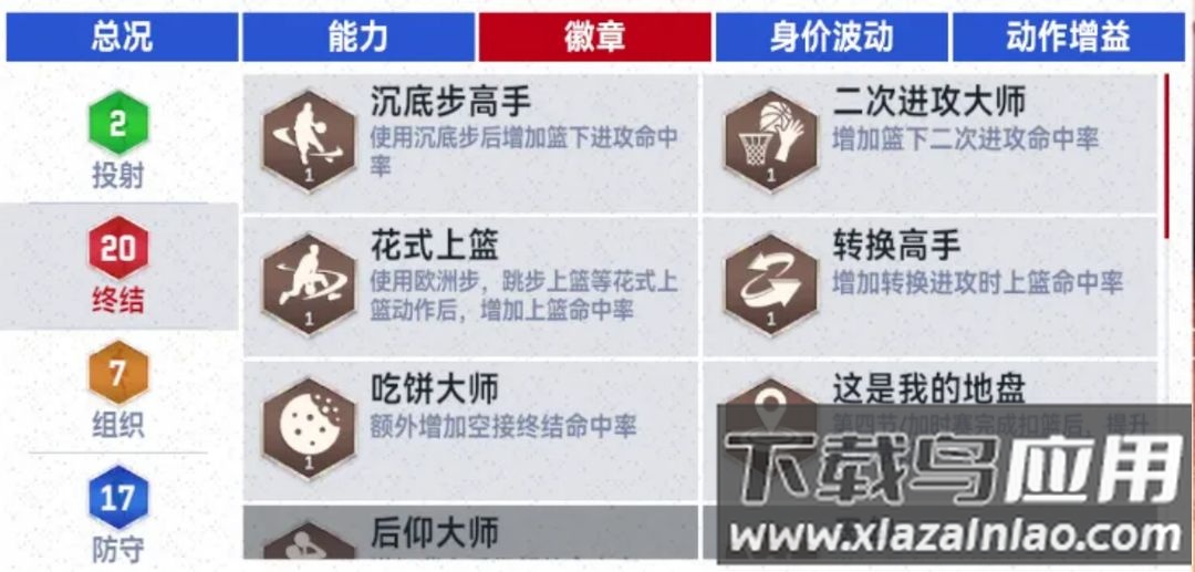 属性说明:细项能力(投射、终结、背身等细项能力数值)