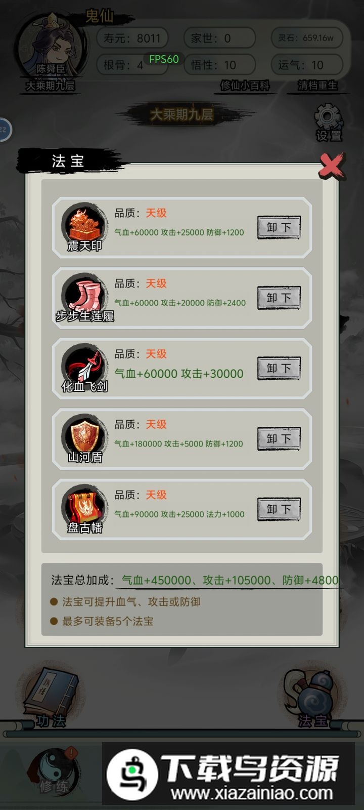 2.后山的蓝色锁具可无限点击增加悟性,悟性越高突破时对丹药依赖越低;锁具还提供基础属性加成,该加成随境界提升按百分比放大,例如筑基期是练气期战力的1.5倍,锁具所加属性也同步放大;丹药加成显示为蓝字,基础属性为黑字,若丹药效果转为黑字,大乘前攻击可超10万;实测255悟性时大乘9层裸战约160-180万,515悟性时大乘4层裸战约270-300万。
