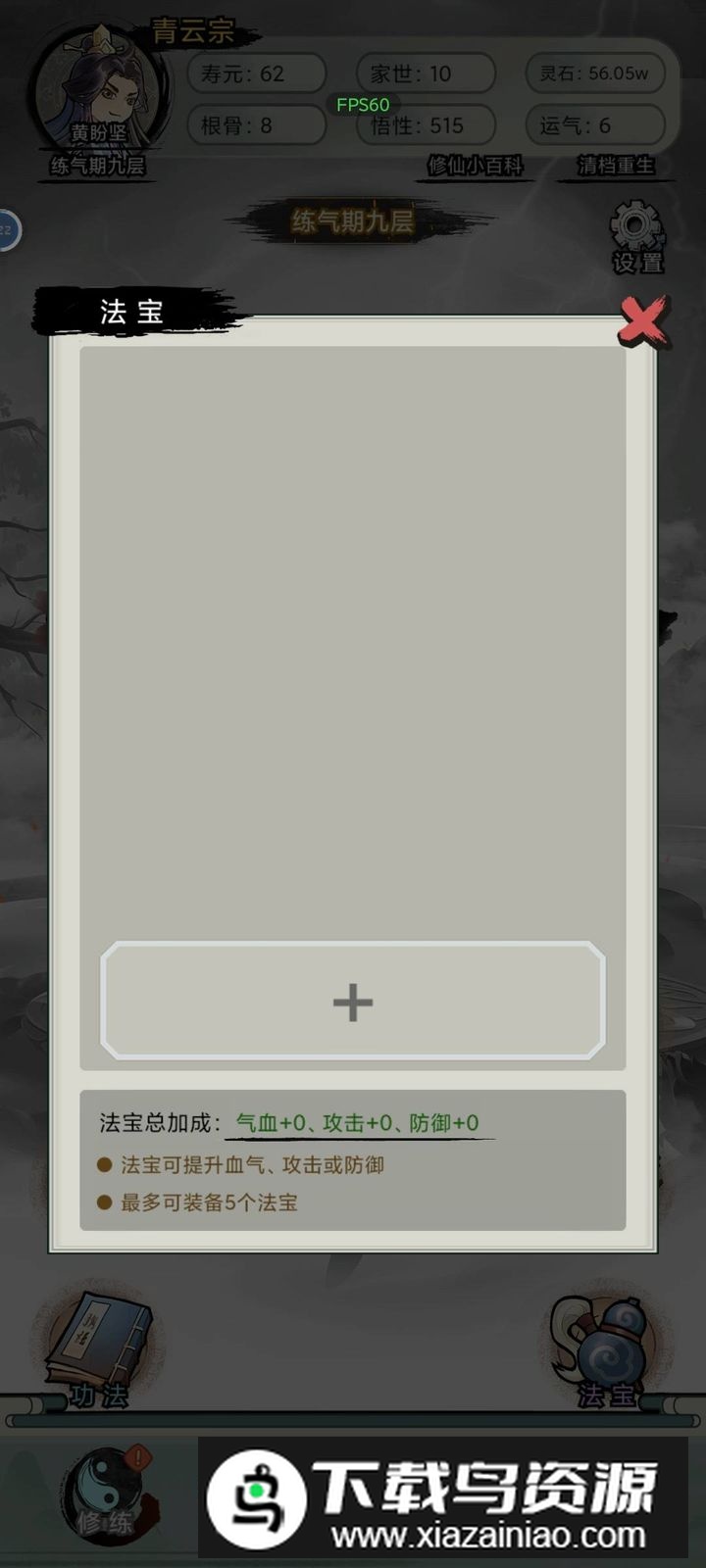 4.战斗属性包括气血、攻击、防御、闪避等,但实际游玩中,根骨和悟性才是核心;根骨直接影响每次修炼获得的灵气量及基础战斗属性,只要根骨足够高,即使不依赖装备功法也能应对多数敌人;悟性则提升境界突破概率,但并非唯一因素,年龄限制也很重要,即便五岁达到练气顶峰、悟性上百,突破率仍可能为零,必须等到特定年龄才能顺利破境。